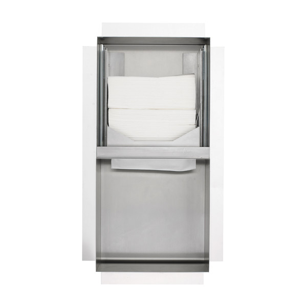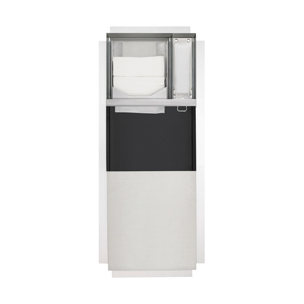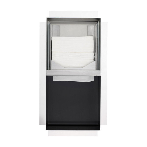 • Concealed paper towel dispenser and waste bin combination