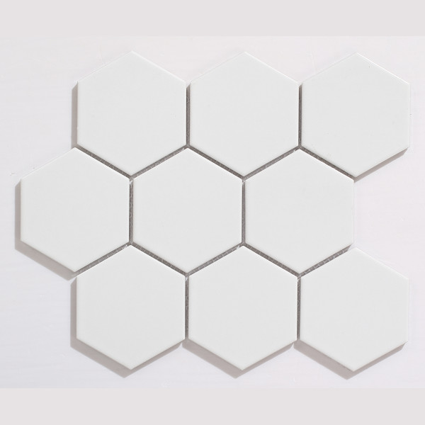 The Large Hexagon White Matt mosaic offers a bold geometric look with its oversized 95 × 110mm porcelain chips. Finished in a smooth matt glaze, this mosaic delivers clean, modern elegance ideal for bathrooms, kitchens, splashbacks, and feature surfaces.