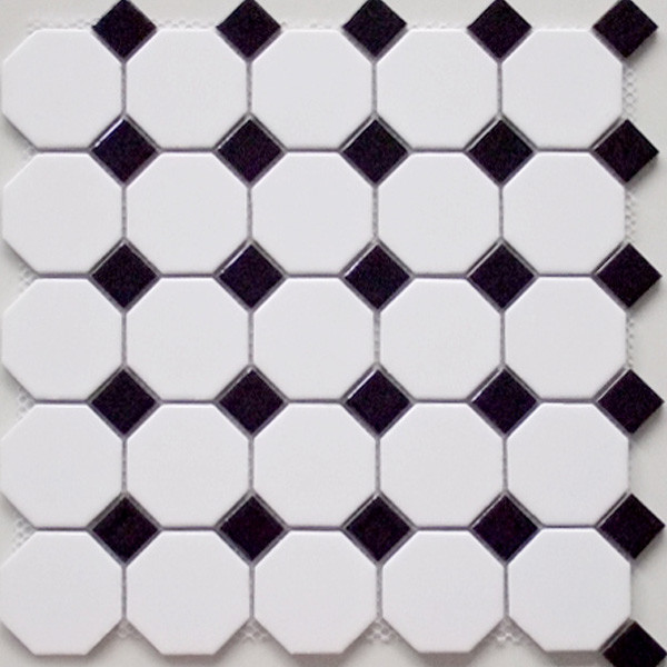 • Colour/Tone: White octagons with black accent squares